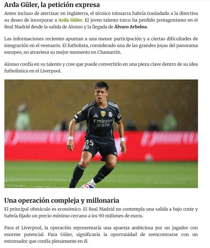 Haberin detaylarında, Real Madrid yönetiminin 19 yaşındaki genç yeteneği kolay kolay bırakmaya niyetli olmadığı ancak 90 milyon Euro civarında bir teklif gelmesi durumunda masaya oturabileceği belirtildi. Arda Güler’in ise daha fazla süre bulabileceği bir projede yer almaya sıcak baktığı öğrenildi. Eğer bu transfer gerçekleşirse, Arda Güler “en yüksek bonservis bedeli ödenen Türk futbolcu” olarak tarihe geçecek.
