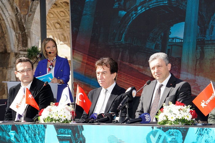 Antalya’nın tarihi miraslarından biri olan Hadrian (Hadrianus) Kapısı’nda düzenlenen Tour of Antalya basın toplantısında konuşan Türkiye Bisiklet Federasyonu Asbaşkanı Metin Cengiz, Tour of Antalya’nın Antalya ve Türkiye için sportif ve turizm değerini vurgulayarak şunları söyledi: